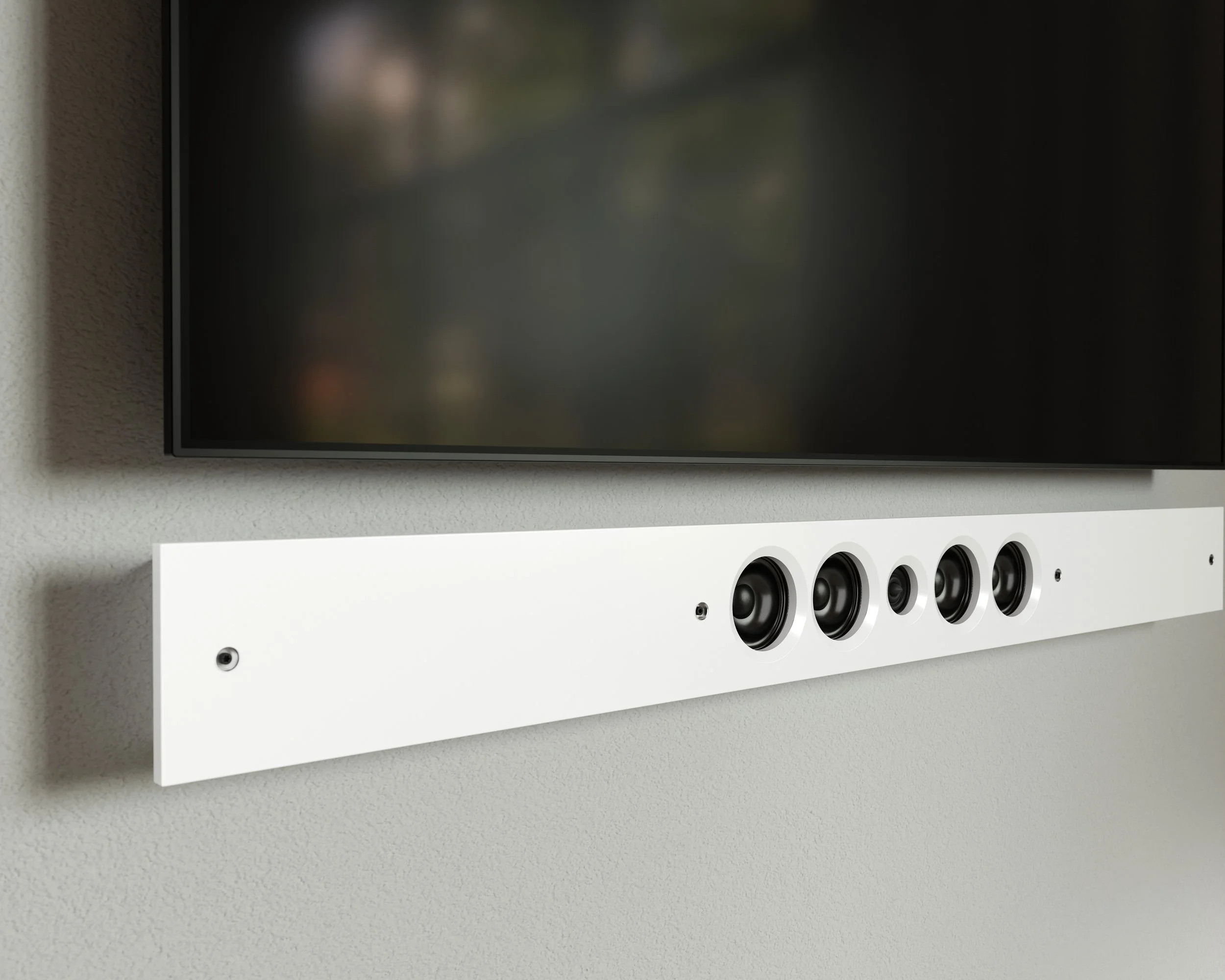 Thanks to Artcoustic’s modular baffle system, the soundbar aligns neatly with displays and architectural elements for a tailored, built-in look. The shallow profile supports multiple installation paths, including on-wall, in-wall, and free-standing, so you can specify the same acoustic signature across diverse room concepts.